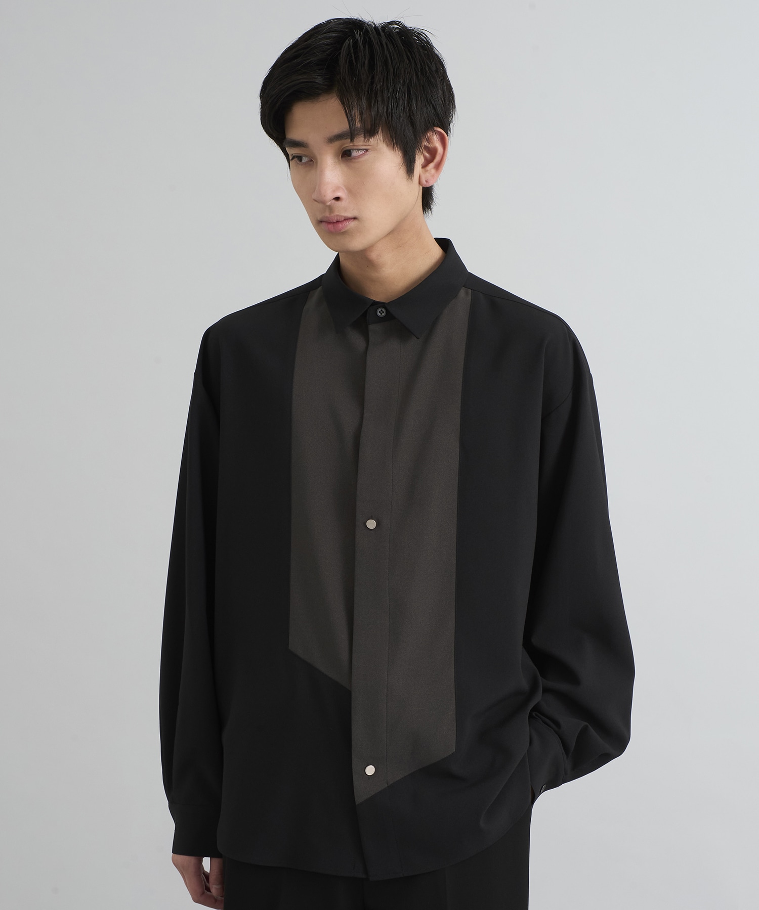 バイカラーのデザインシャツ フロントボタンに特徴があり、インナーとしてお使いいただいた際に、デザインが見えやすくなっています