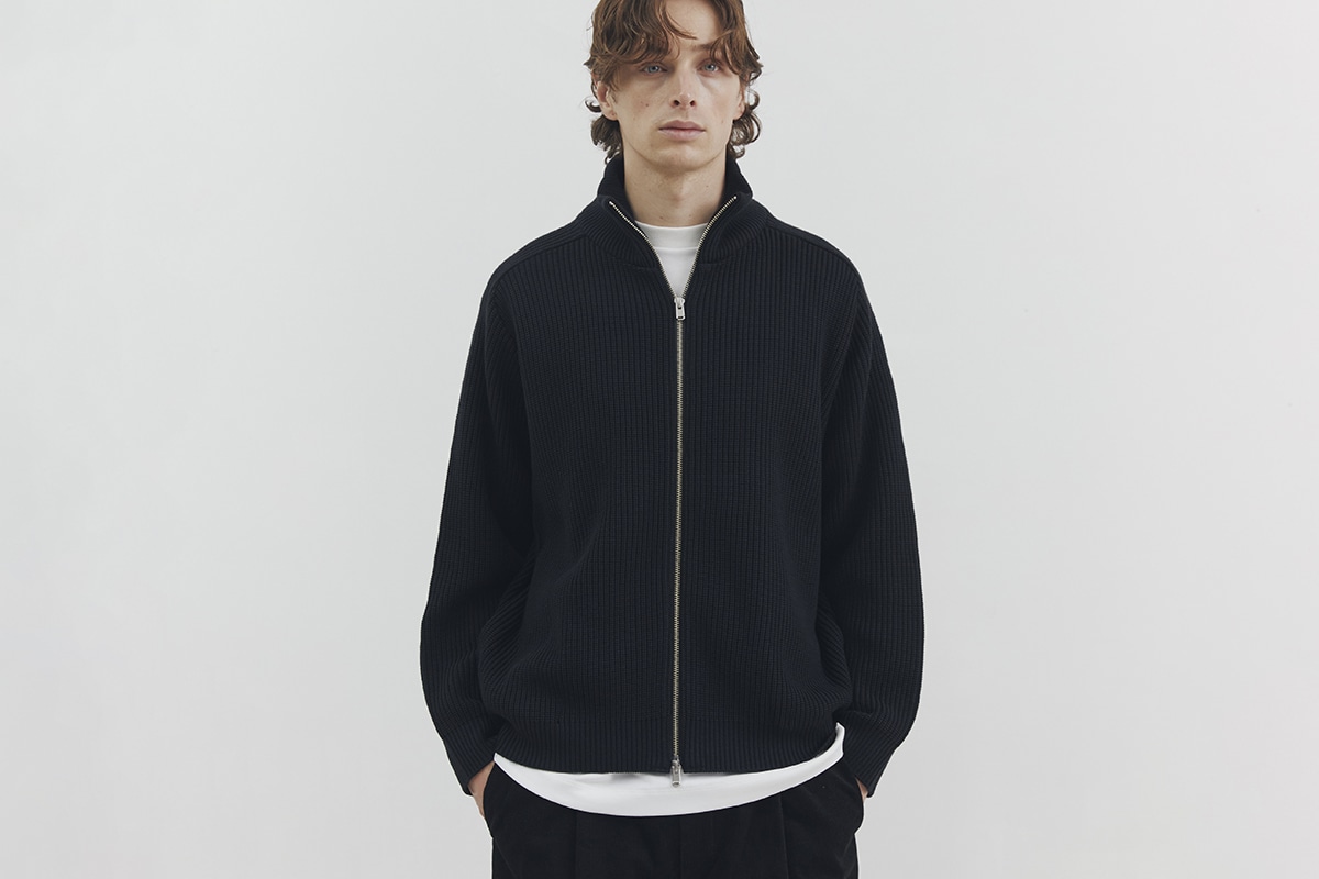 ベースは王道のドライバーズニット。そこに、今っぽい抜け感を出せるリラックスフィットで落とし込みました。