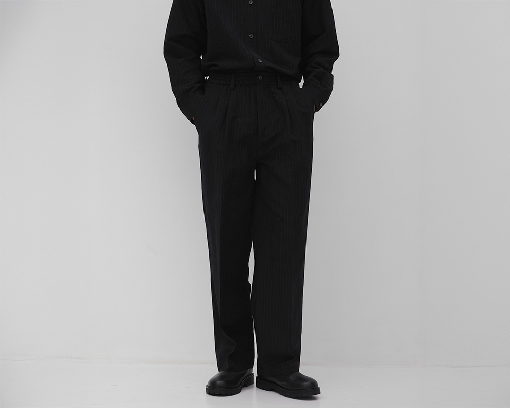 深めの2タックがつくる立体感と、ストレスフリーなイージー仕様を両立した一本です。