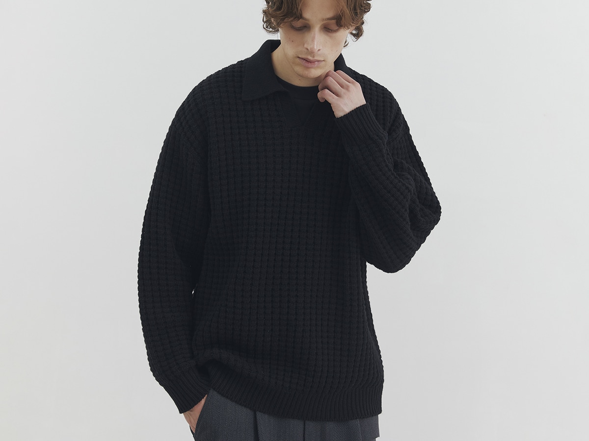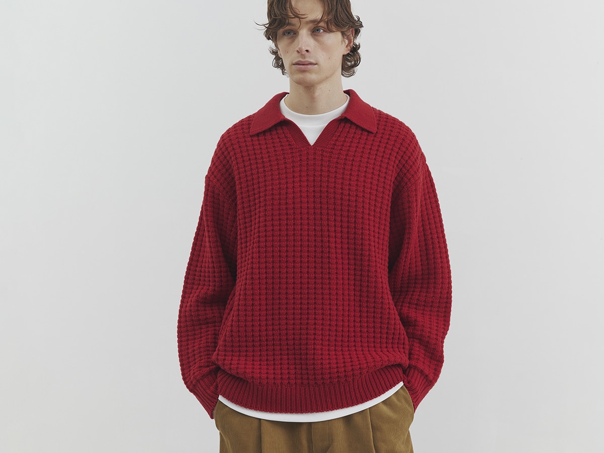 ビッグワッフルの立体感とスキッパーの抜け感が、