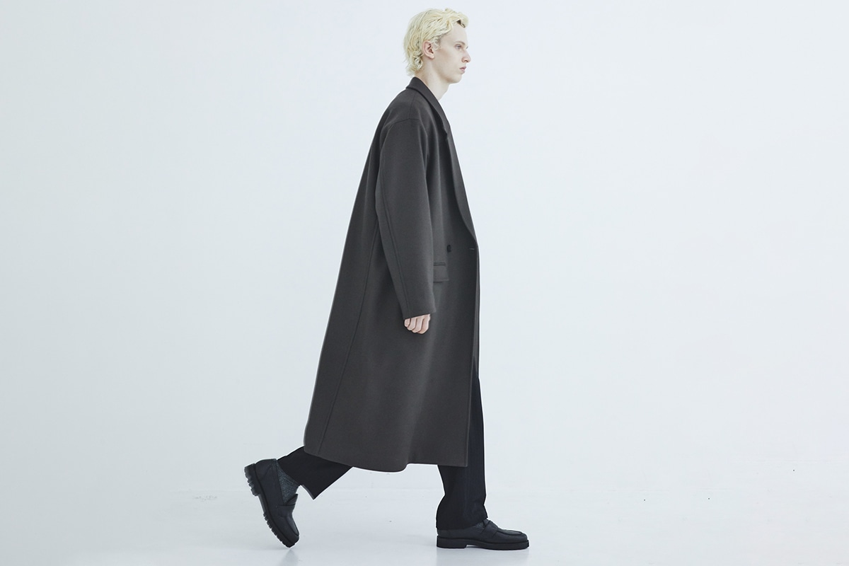 [ デザイン ]   ●膝下丈のロングレングス、ゆったりとしたオーバーサイズのチェスターコート。