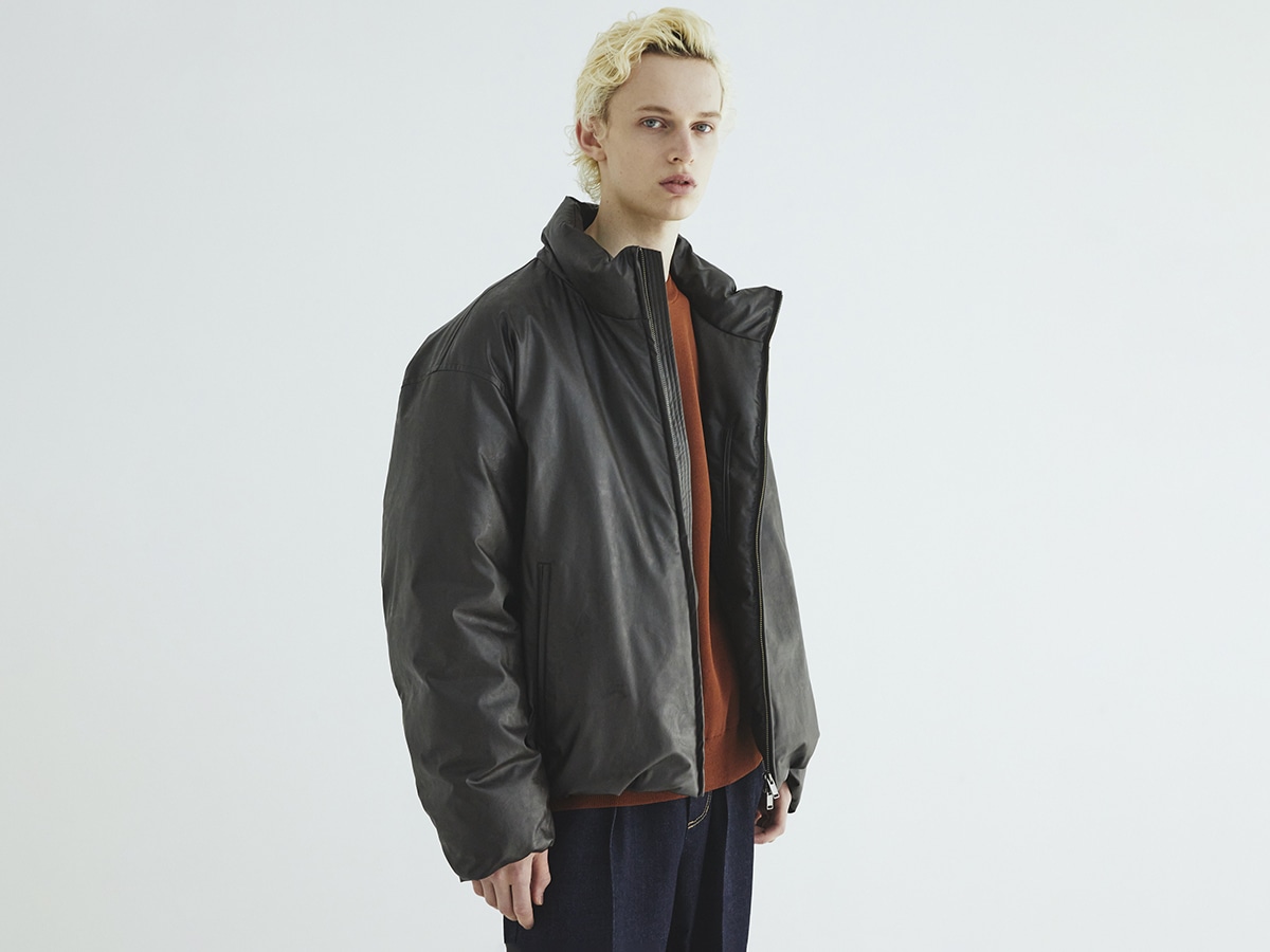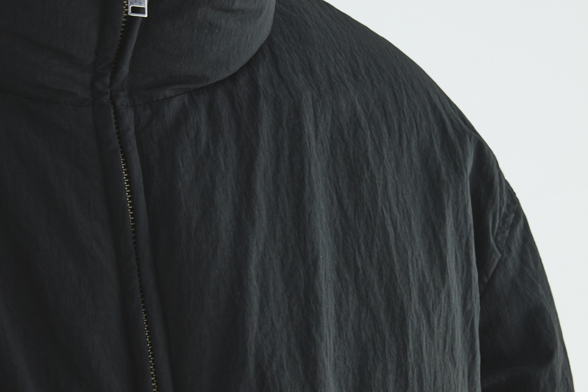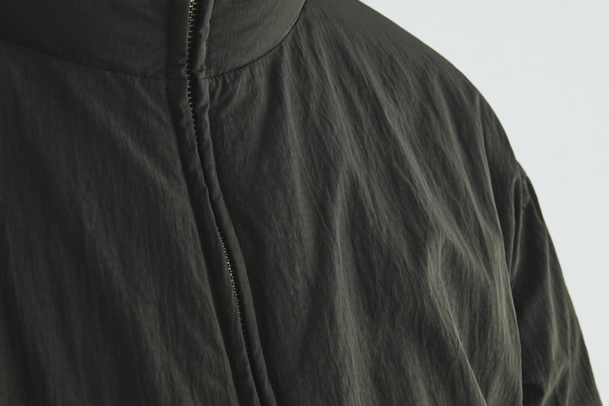 ●フロントはミニマルなセンタージップ。過度なキルトを排したフラットな表情で、ダウンのボリューム感を抑制。