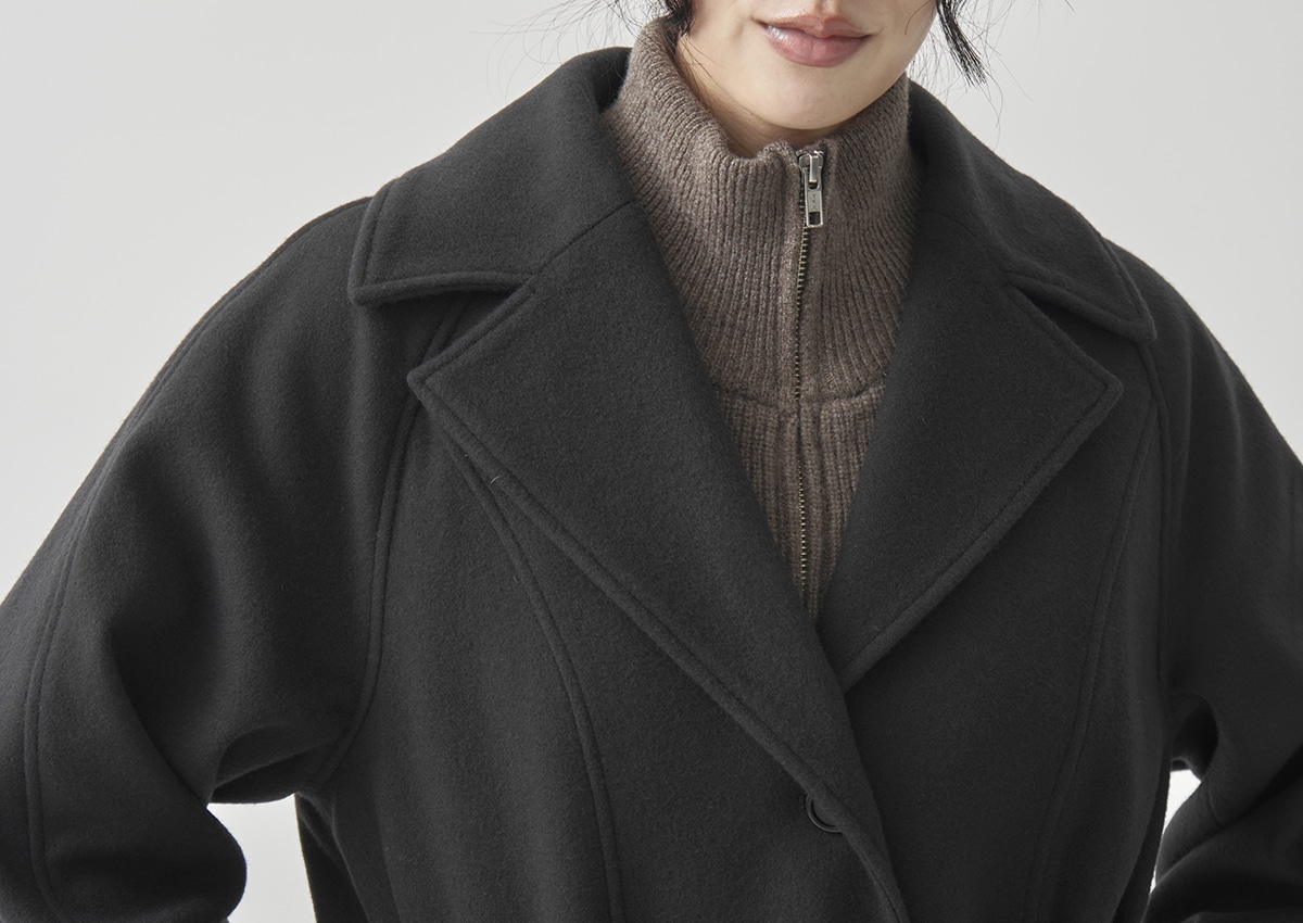 ・ラグラン袖の付けをロールさせたディテールで、シンプルな中にも奥行きと立体感をプラス。