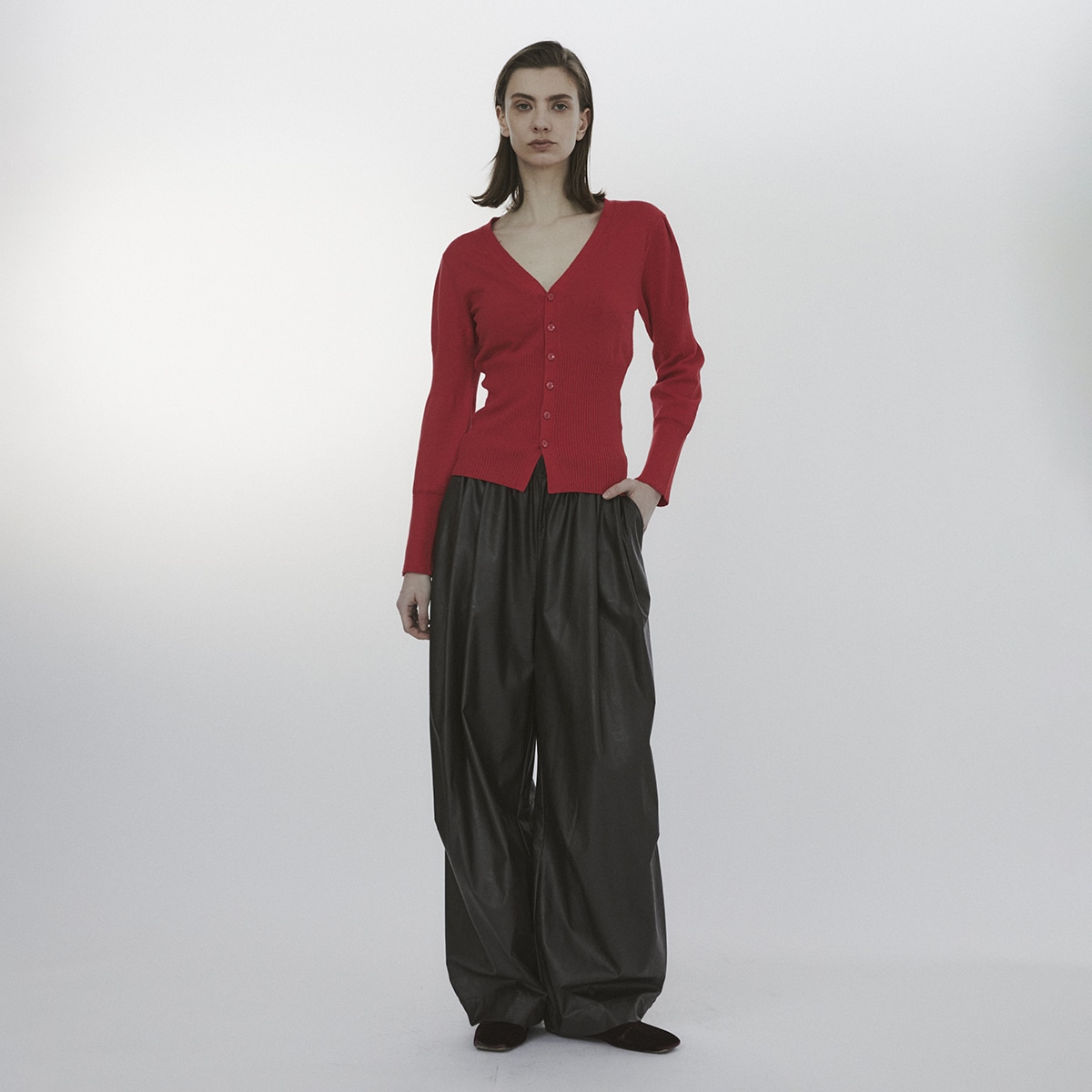 レザー見え素材でも軽やかに穿けて、春夏の装いにも自然に馴染みます。