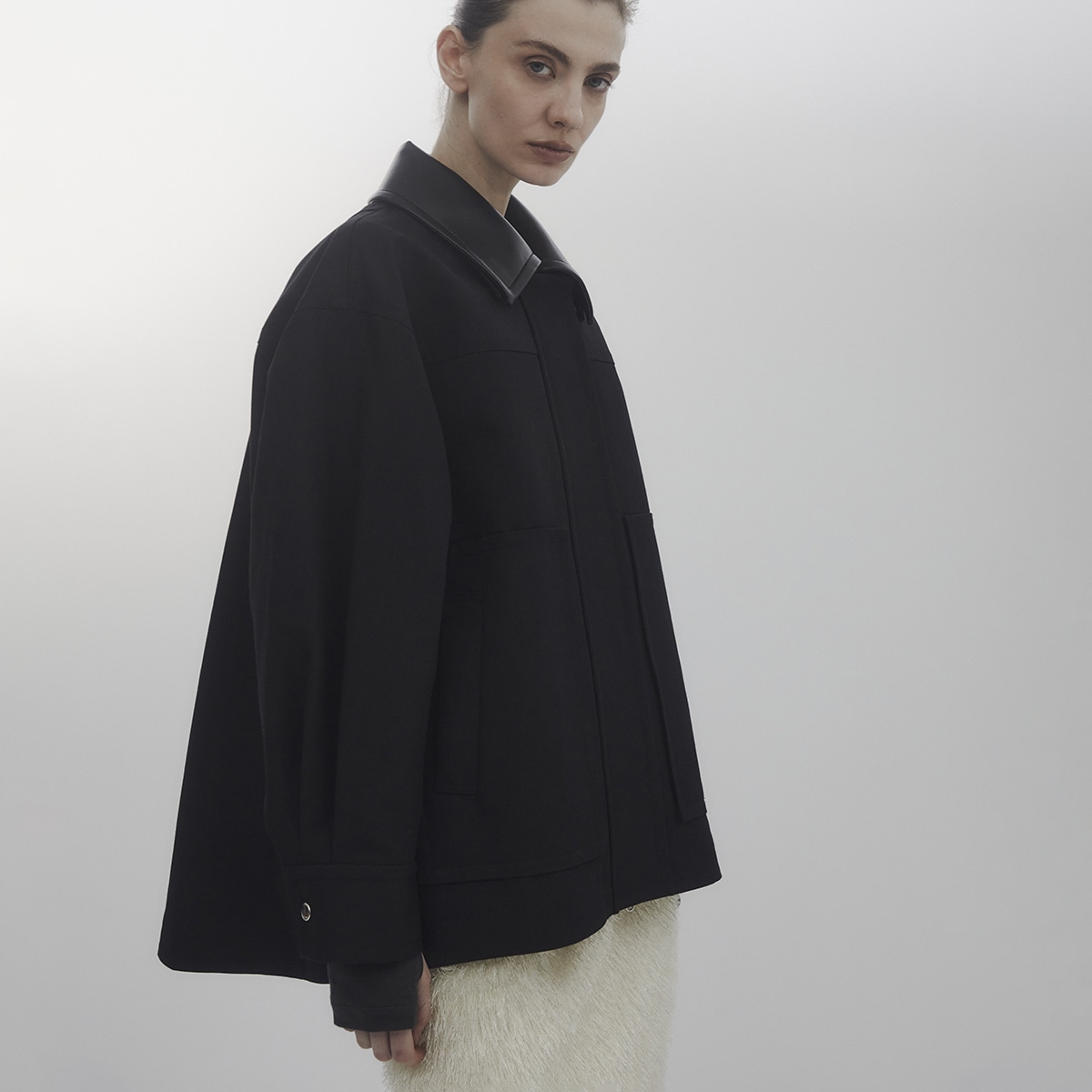 異素材のコントラストと、生地の密度が生む陰影。